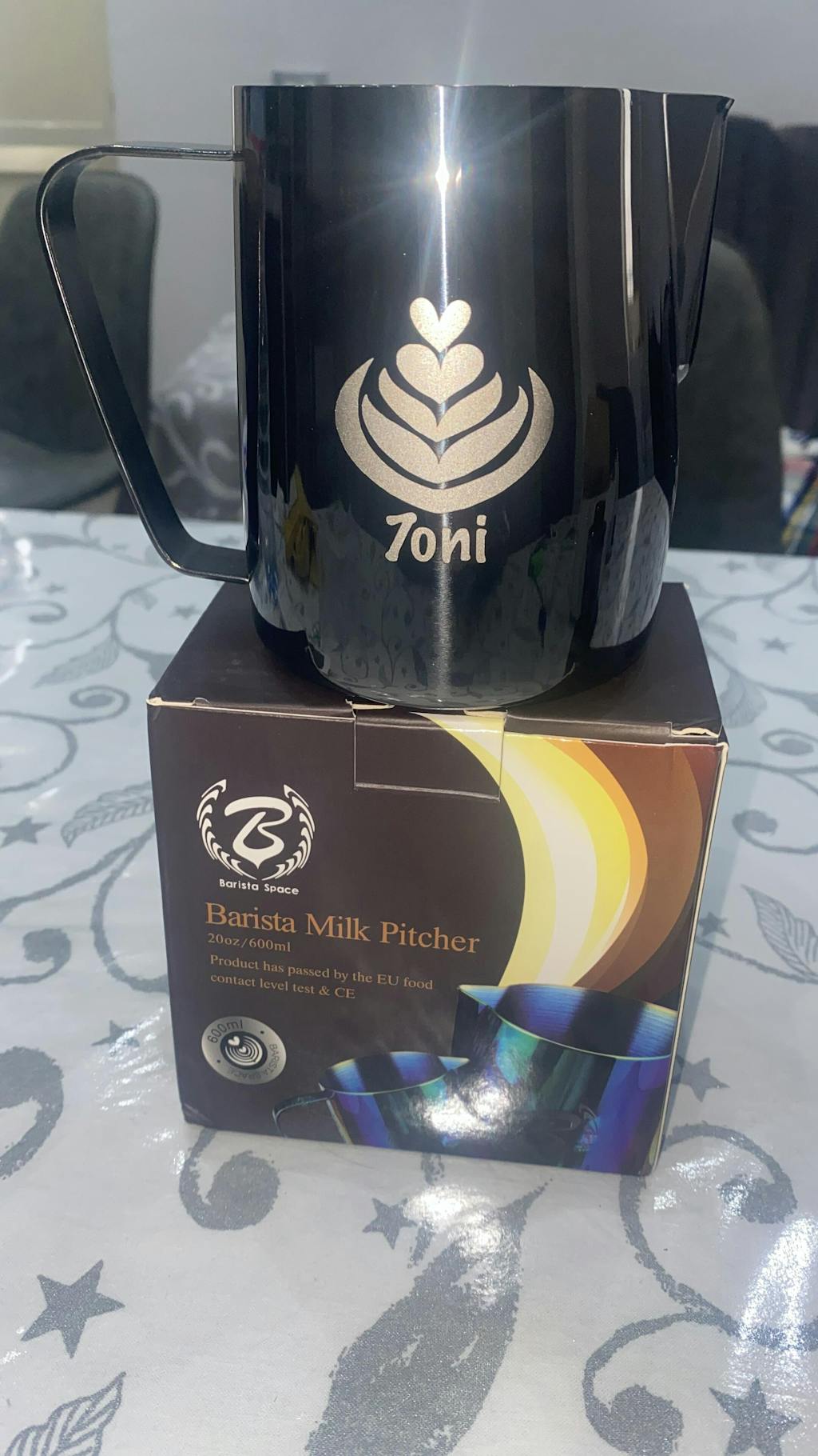 Step 1: Please order online first for the customize milk jug and then send us your Face picture(High Solution JPG file), Words or Logo to our Email: ak@baristaspace.com